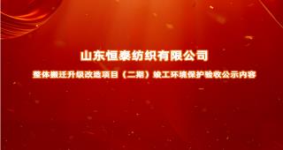 山東恒泰紡織有限公司整體搬遷升級改造項(xiàng)目(二期)竣工環(huán)境保護(hù)驗(yàn)收公示內(nèi)容